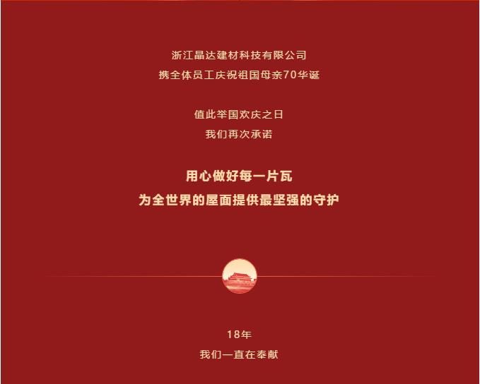 堅守使命,不忘初心,晶達建材慶祝祖國母親70年華誕