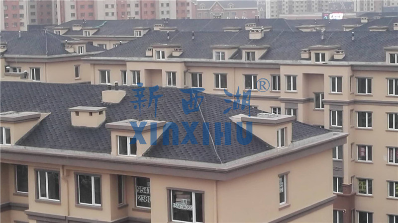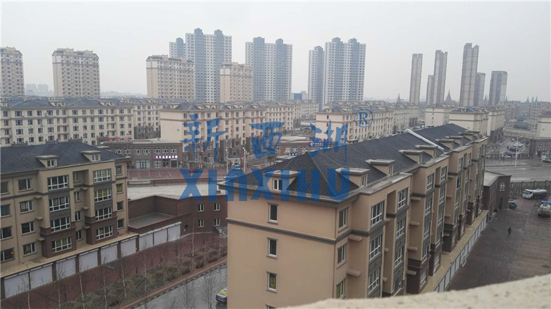 2018年4月15日,公司對大慶欣鳳學城項目瀝青瓦使用情況進行回訪,欣鳳學城項目17與公司合作,采用新西湖品牌馬賽克六角型慕冷灰顏色,共計項目用量12000平方。